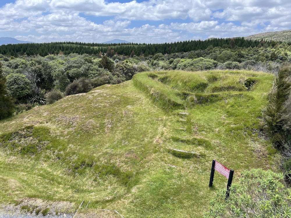This pā was restored by Heritage NZ in the twentieth century and its remnants are clearly visible in the landscape.